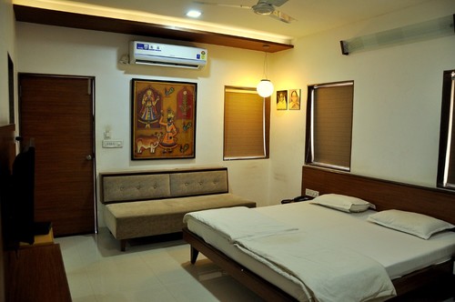Villa features extensive private open yard with lush green private garden. Ultra modern furnished interconnected two bed rooms with individual bathrooms, dressing area, sofa cum bed in one room, intercom, mini fridge, electronic safe, tea kettle and LED television in both the rooms. Room heater can be made available upon request. Can accommodate maximum 5 persons.